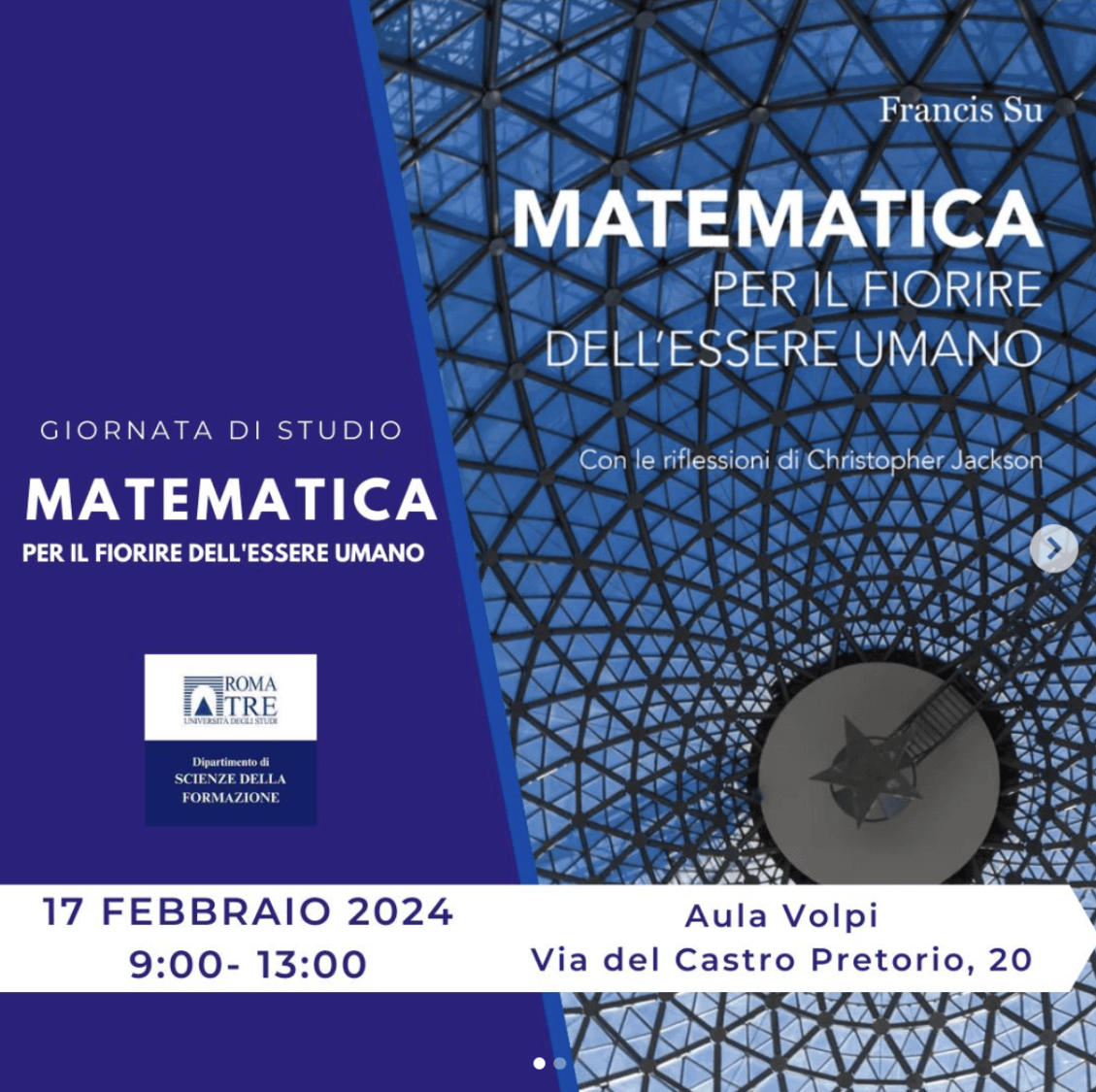 Segnaliamo una giornata di studio in occasione della pubblicazione dell'edizione italiana del saggio MATEMATICA PER IL FIORIRE DELL'ESSERE UMANO.