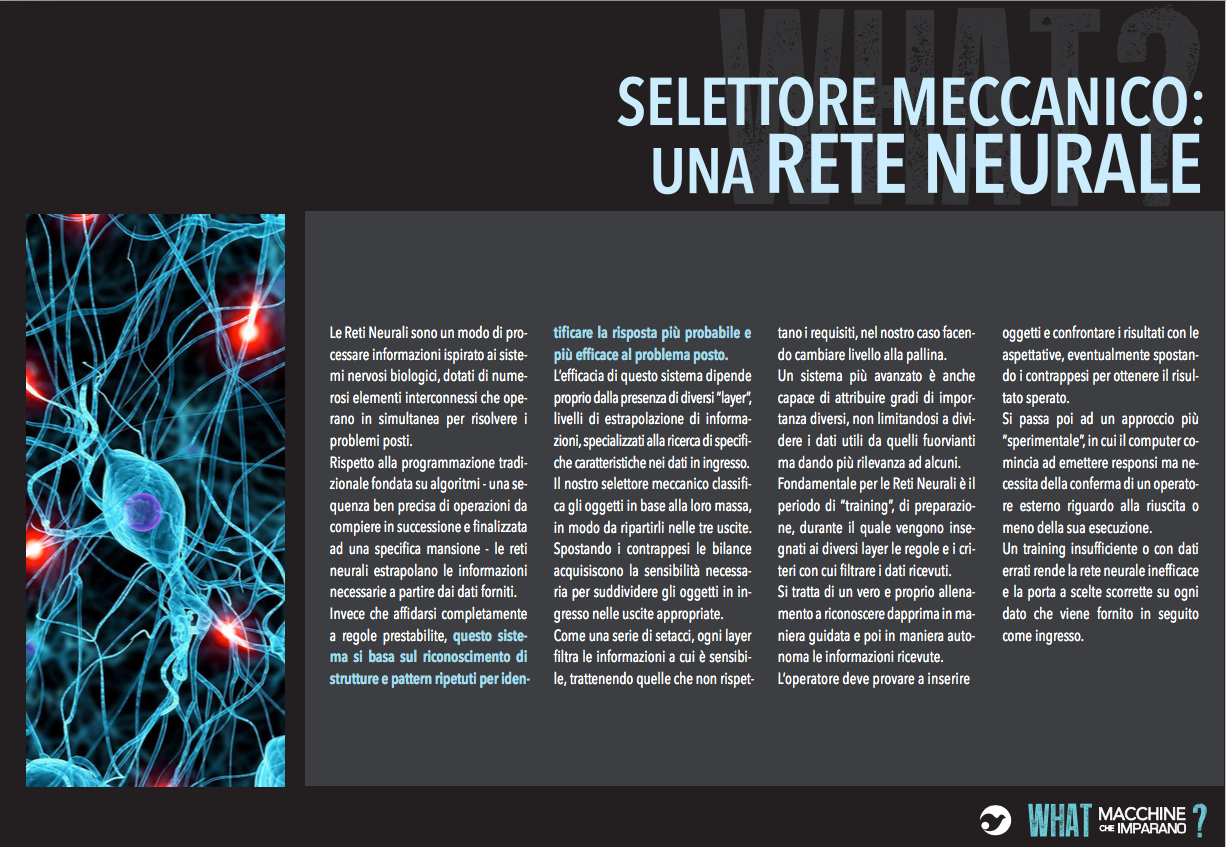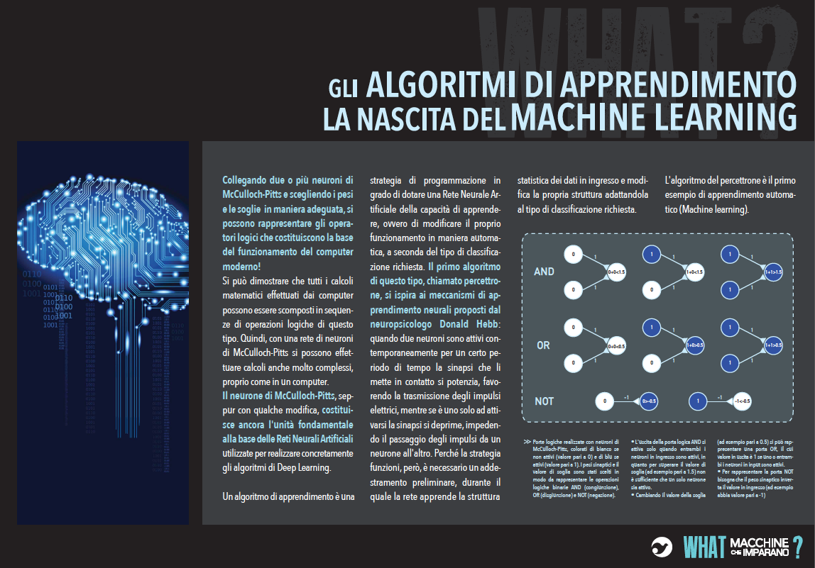 Lo spazio si apre con un video che introduce l’argomento e pone al centro del tema il confronto tra uomo e macchina, che fa da sfondo a tutto l'allestimento. Alcuni corner aiutano il visitatore a cogliere gli aspetti fondamentali del machine/deep learning facendo il parallelo tra le diverse modalità di apprendimento tra uomo e macchine e suggerendo punti di vista e citazioni che permettano di entrare nel mistero di questo paragone: